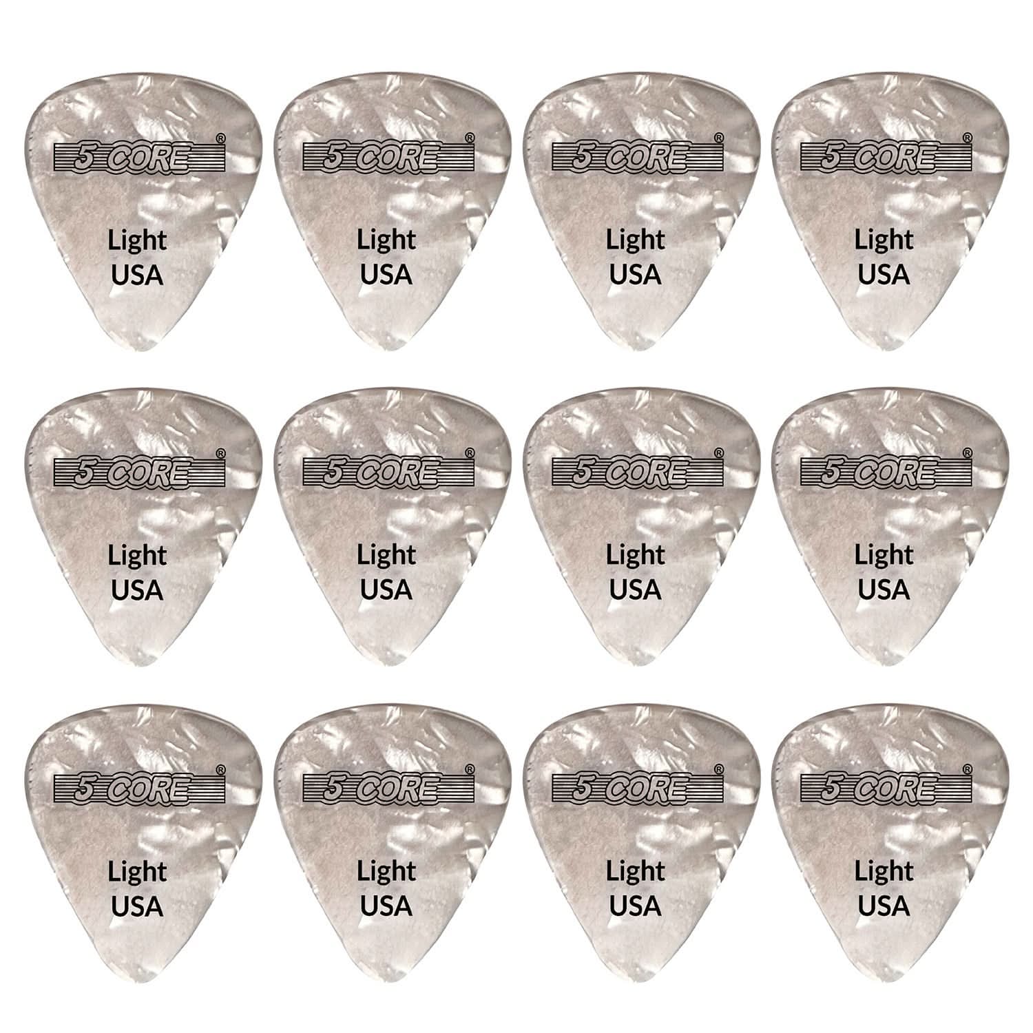 5Core Guitar Picks Celluloid Light Gauge 0.46mm Pick - Acoustic Electric Bass Guitars WHITE