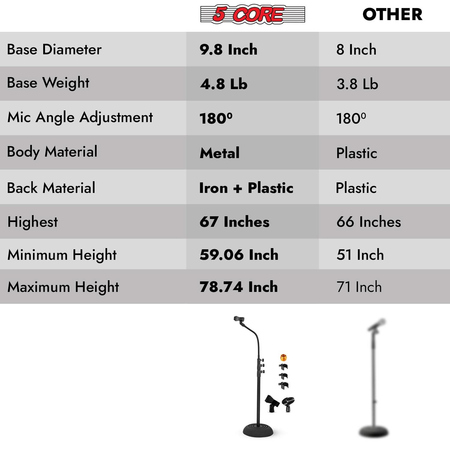 5Core Mic Stand Pair Floor Adjustable Universal Heavy Duty Gooseneck Microphone Stands Round Base Soporte De micrófono